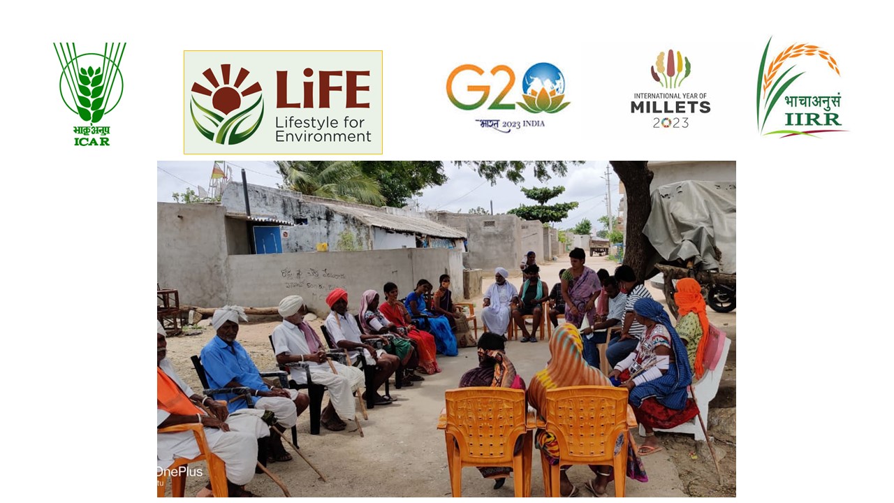 As part of MissionLife activities, ICAR-IIRR organised "Promotion and bringing awareness of Climate resilient rice varieties" through workshop and farmer group meeting during 27th May 2023